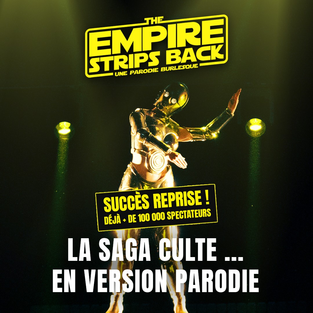 Malheureusement, il n'y a actuellement aucun événement disponible pour The Empire Strips Back - La Parodie. N'hésitez pas à vous inscrire à nos alertes pour être automatiquement informé(e) de l'actualité pour The Empire Strips Back - La Parodie.