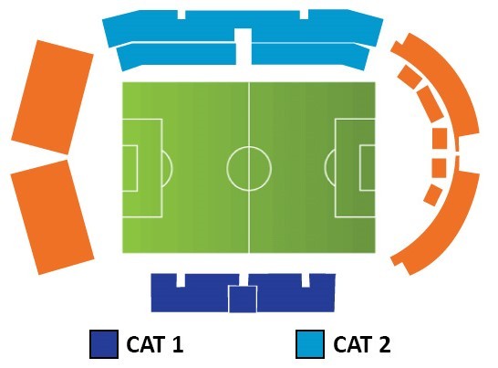 CATEGORIES : Catégorie 1 :Tribune latérale « Tribuna » - en bleu foncé sur le plan Catégorie 2 :Tribune latérale « Distinti » - en bleu clair sur le plan